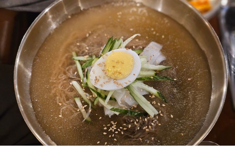 Mul Naengmyeon koostuu nuudeleista, jotka tarjoillaan kylmässä liemessä yhdessä keitetyn kananmunan, siivutetun naudanlihan ja tuoreiden vihannesten kanssa. Tämä perinteinen korealainen ruoka on suosittu etenkin kesällä, mutta sitä nautitaan ympäri vuoden.